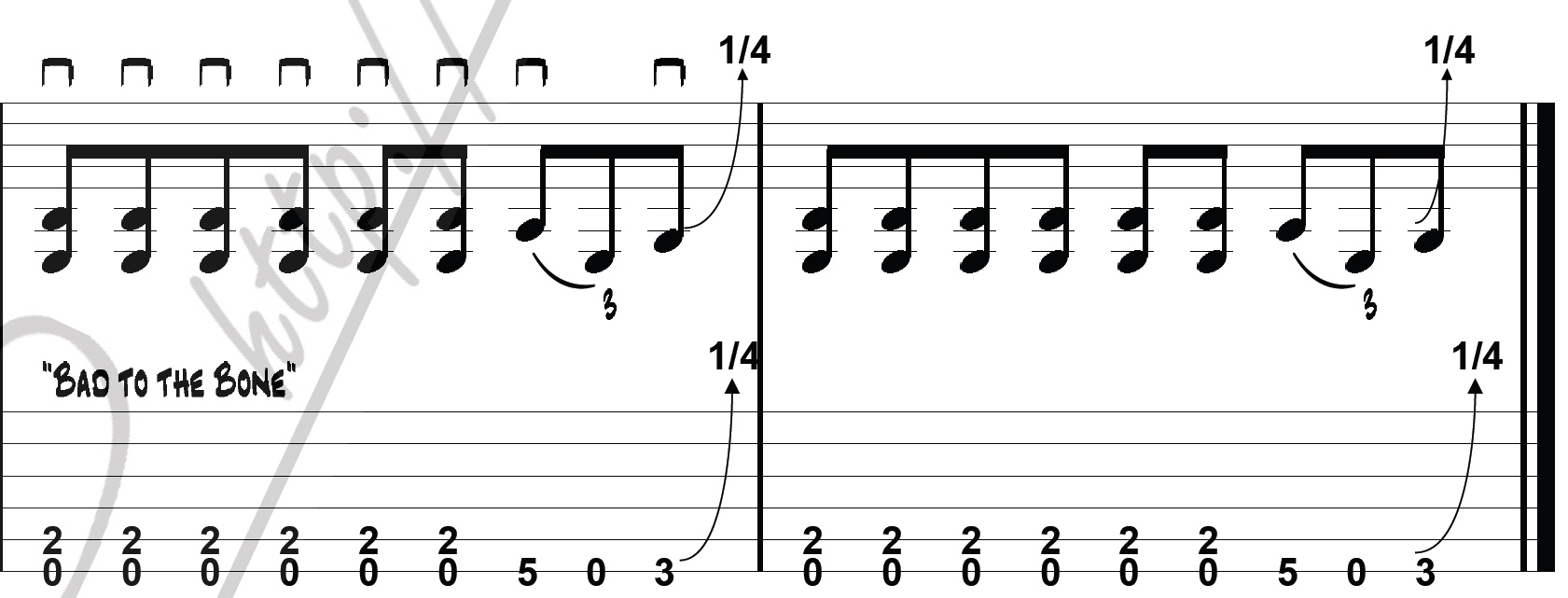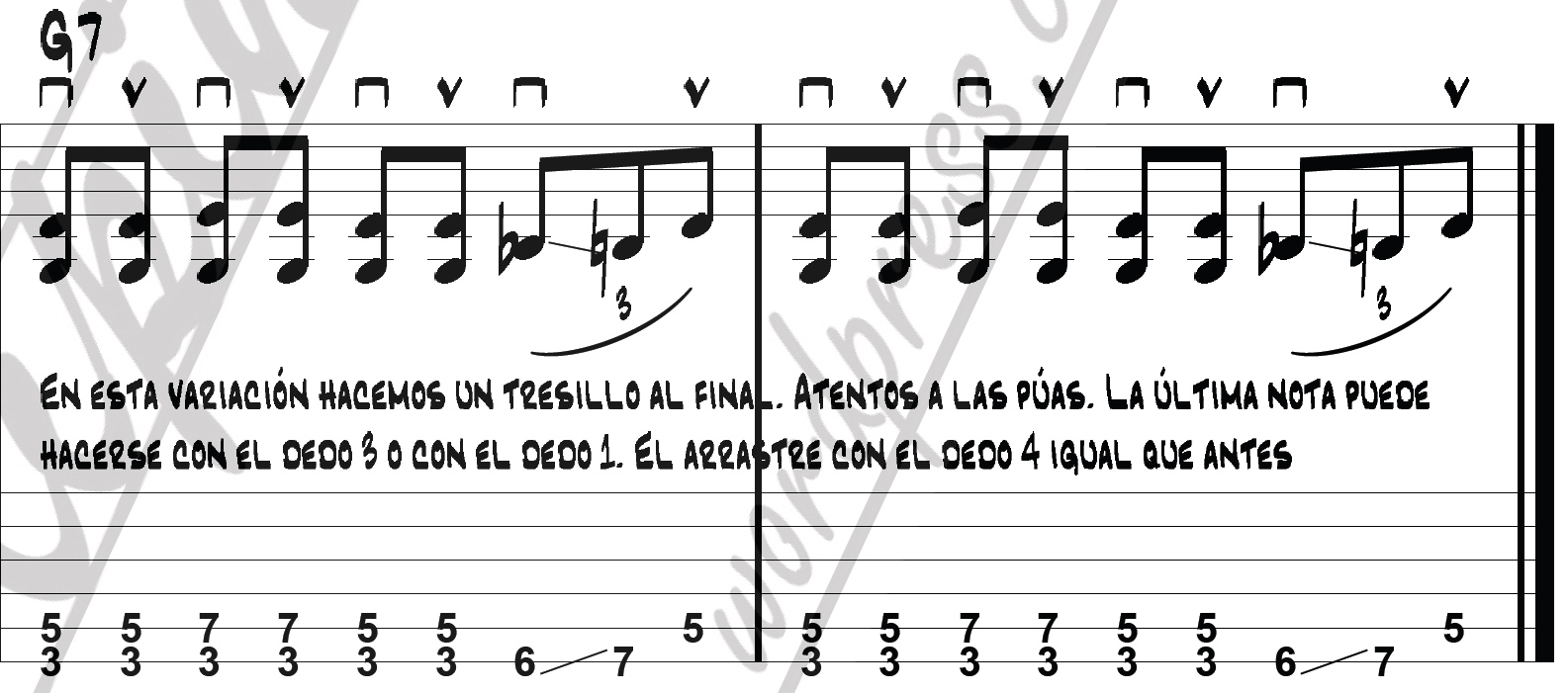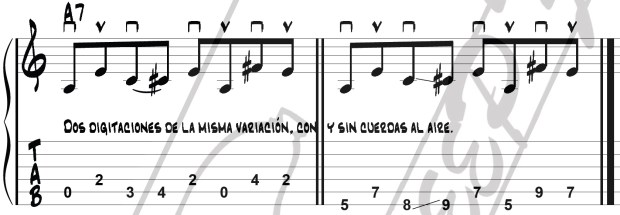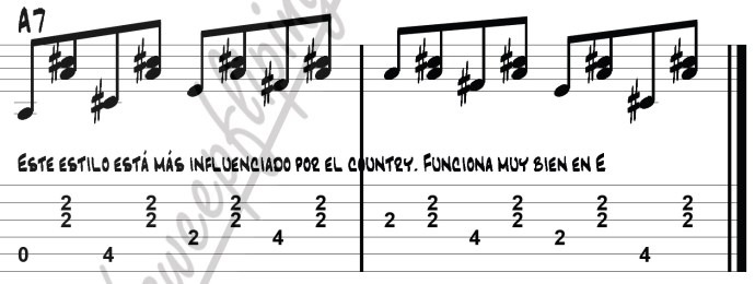 Se pueden hacer infinitas variaciones, pero aquí he seleccionado 4 riffs que suelen utilizarse, y a cada uno le he puesto el nombre de una canción donde podéis oirlos.