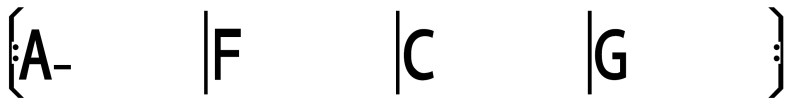 Un fallo muy común en guitarristas autodidactas es tocar todas las canciones usando siempre el mismo ritmo en la mano derecha, especialmente al tocar los acordes de temas de pop y rock. En esta lección veremos una serie de patrones de acompañamiento útiles para estos estilos. Aplicaré casi todos ellos a la misma progresión de acordes, a veces con un ritmo de un acorde por compás, otras veces de dos acordes por compás, y otras de una manera y a continuación de la otra. Esta es una progresión armónica muy típica de estos estilos: