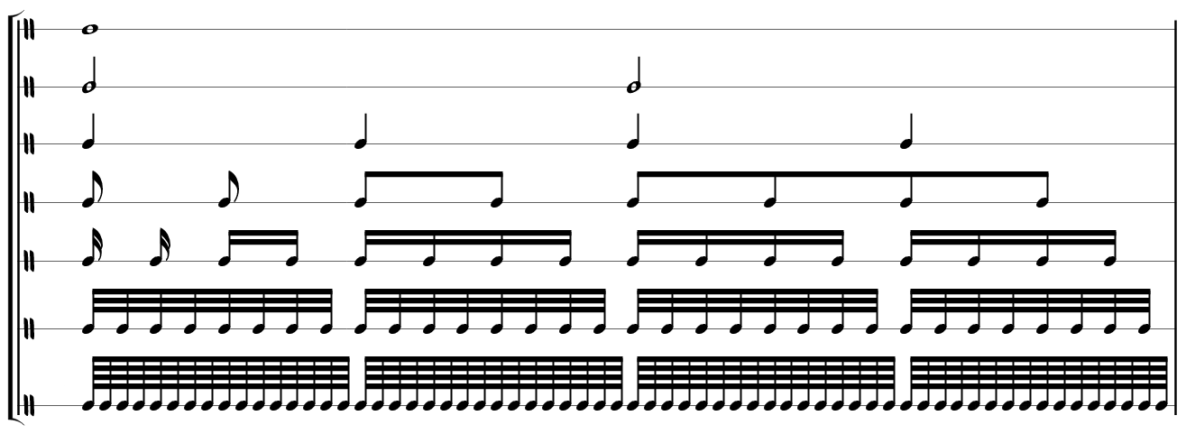 Aquí tenéis cómo suenan realmente, ejecutadas con un piano midi, cada figura por separado: