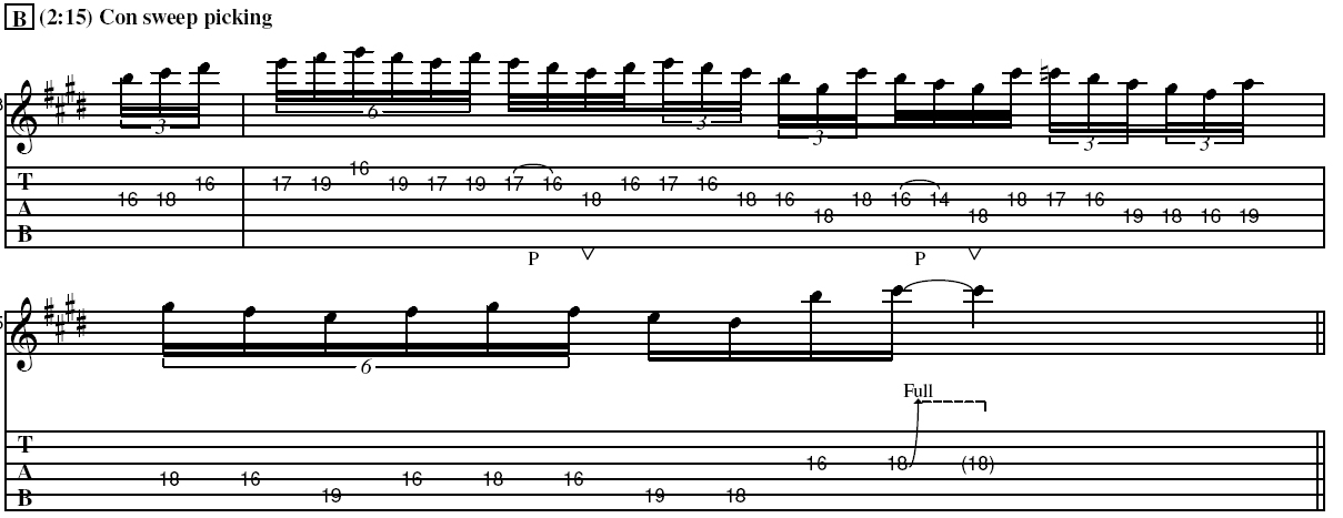 En el vídeo, menciono una frase que yo toco de una manera y está así en la transcripción. Si queréis tocar esa frase nota por nota como Yngwie, la podéis ver en esta imagen (click para ampliar):
