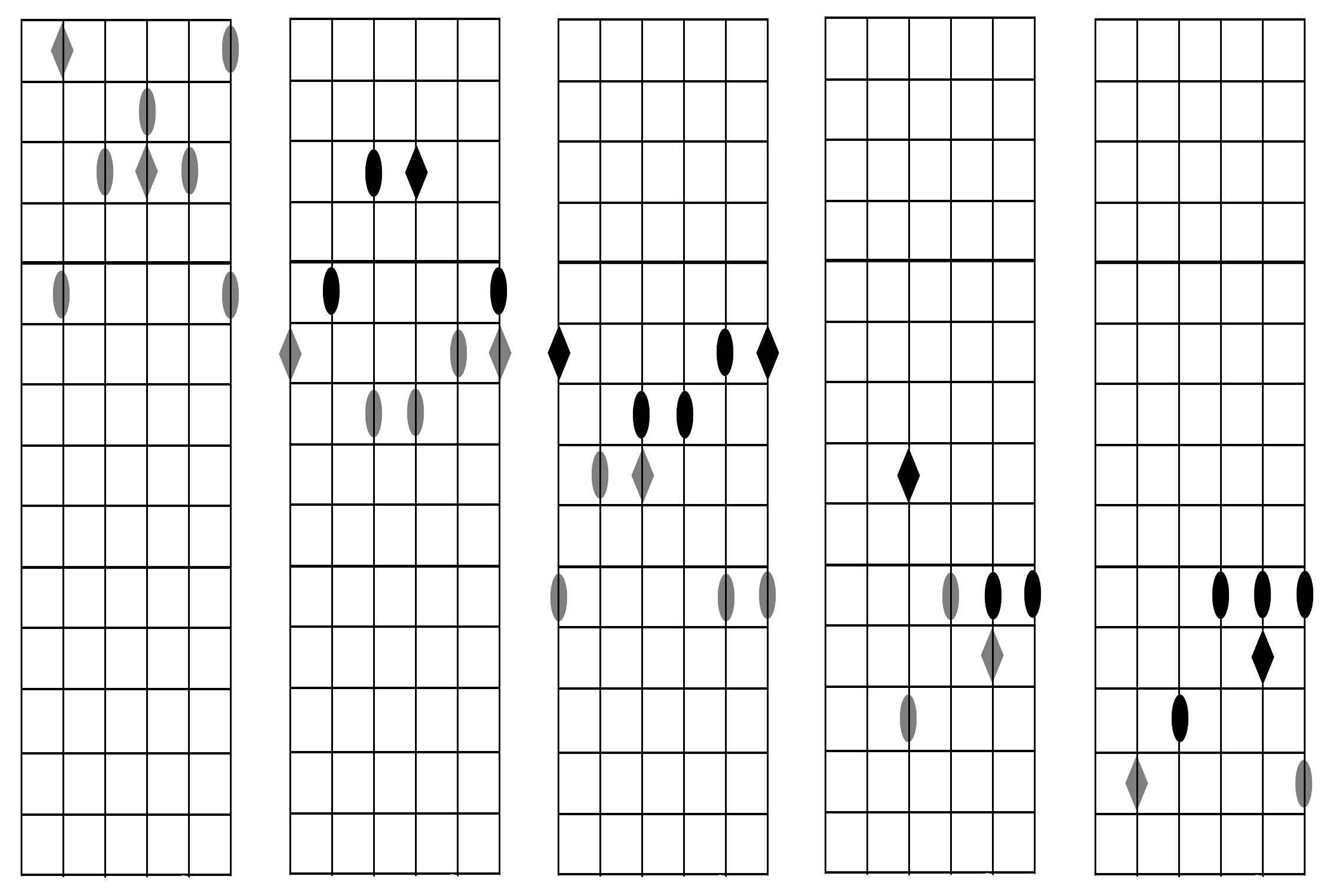 Cada una de ellas se puede relacionar con una posición de escala, de pentatónica, o de un acorde, siguiendo el sistema CAGED.