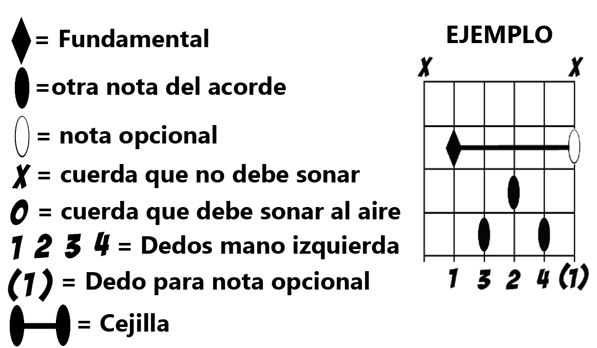 A continuación tenéis la leyenda y tres ejercicios para memorizar la hoja de los acordes.