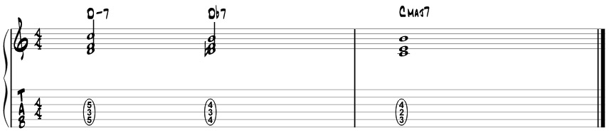 Imaginemos el dominante principal de la tonalidad, que se fundamenta sobre el grado V y resuelve sobre el grado I. Podemos suavizar el paso hacia el V precediéndolo del II-7. De hecho, en jazz el movimiento armónico II-7, V7, I es la progresión más común.
