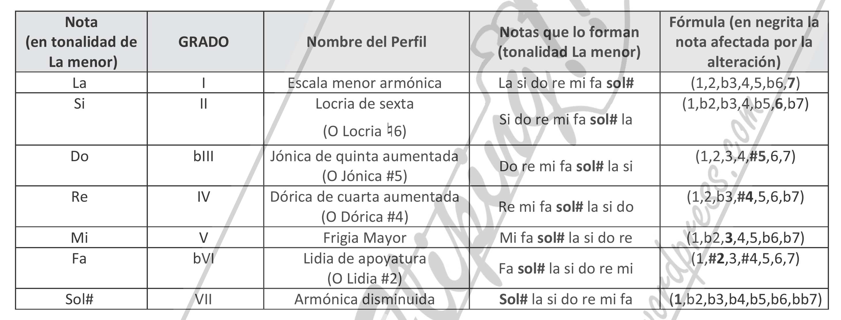 - Los 7 perfiles de la escala menor armónica